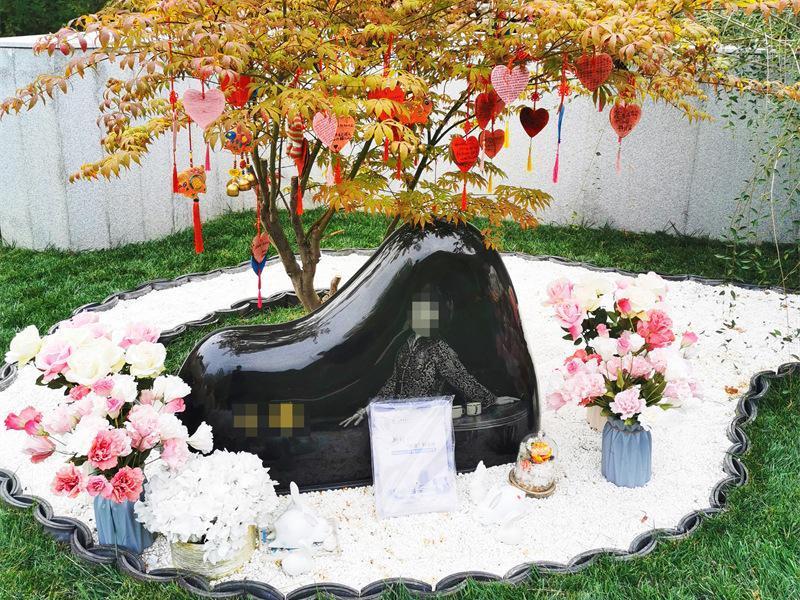 还有一种是自然石碑或卧碑形式的树葬,是有墓穴池的,可以保留骨灰,就是不立碑,虽然占地面积很小,但是碑型新颖别致,美观大方。